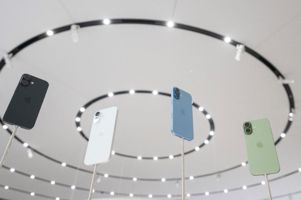 Despite tariffs that increase production costs, Apple kept iPhone prices unchanged from last year’s equivalent models — a move that may squeeze profit margins.
