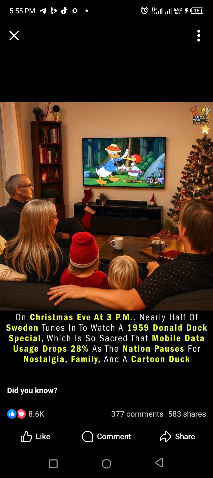 Every Christmas Eve at 3PM, Sweden goes quiet — not because of snow or power cuts, but for Donald Duck! 🦆✨