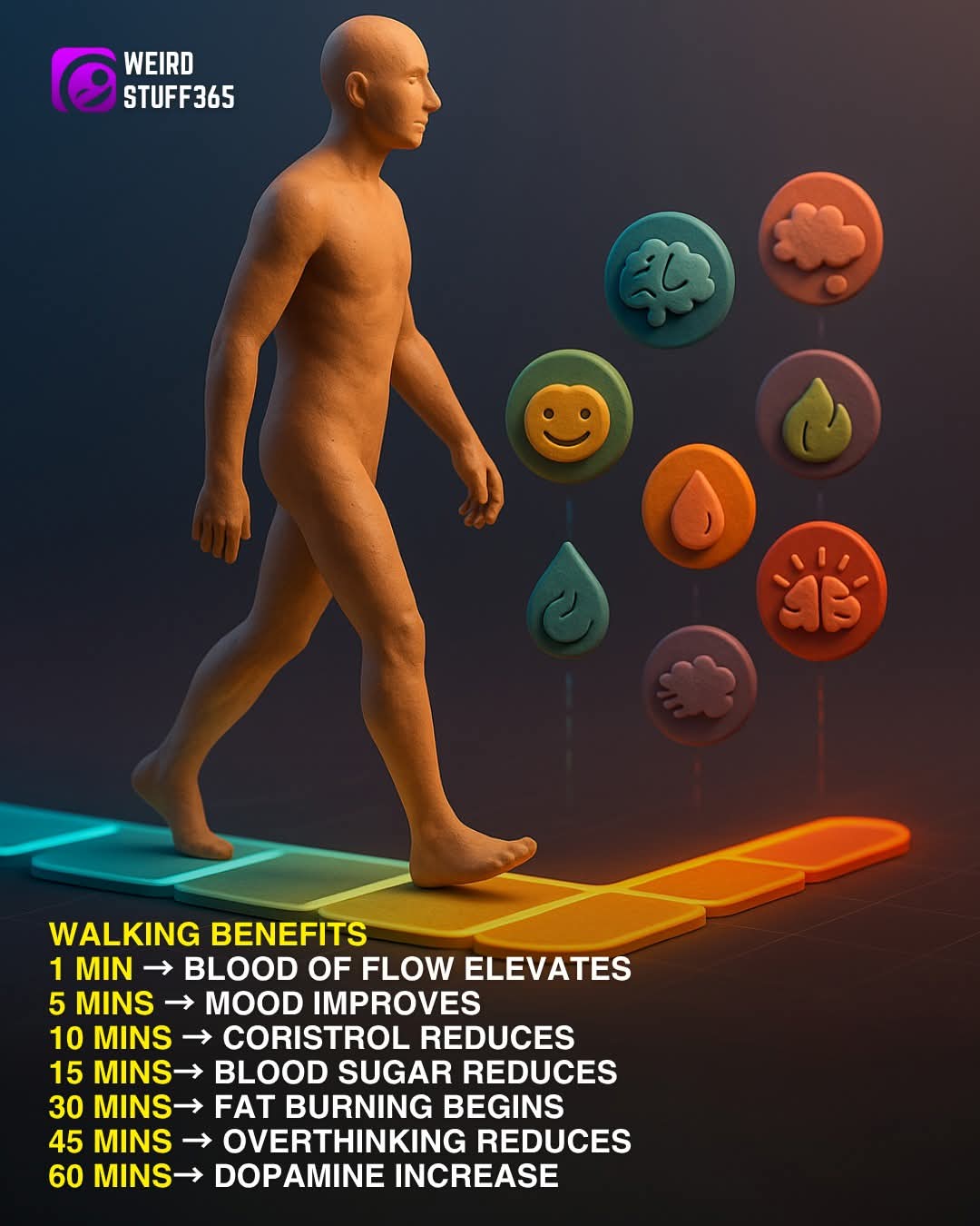 HealthLifestyleBenefits Of Walking Samuel Adiodo4 months ago4 months ago01 mins A doctor has broken down what happens to your body when you walk—not just for an hour, but even for a single minute—and the differences might surprise you. Source: Weird Stuff 365 Post navigation Previous: Oba Adesida: The king who rejected being a governor, saying that the position was below the dignity of his throneNext: The Man Who Never Saw A Woman