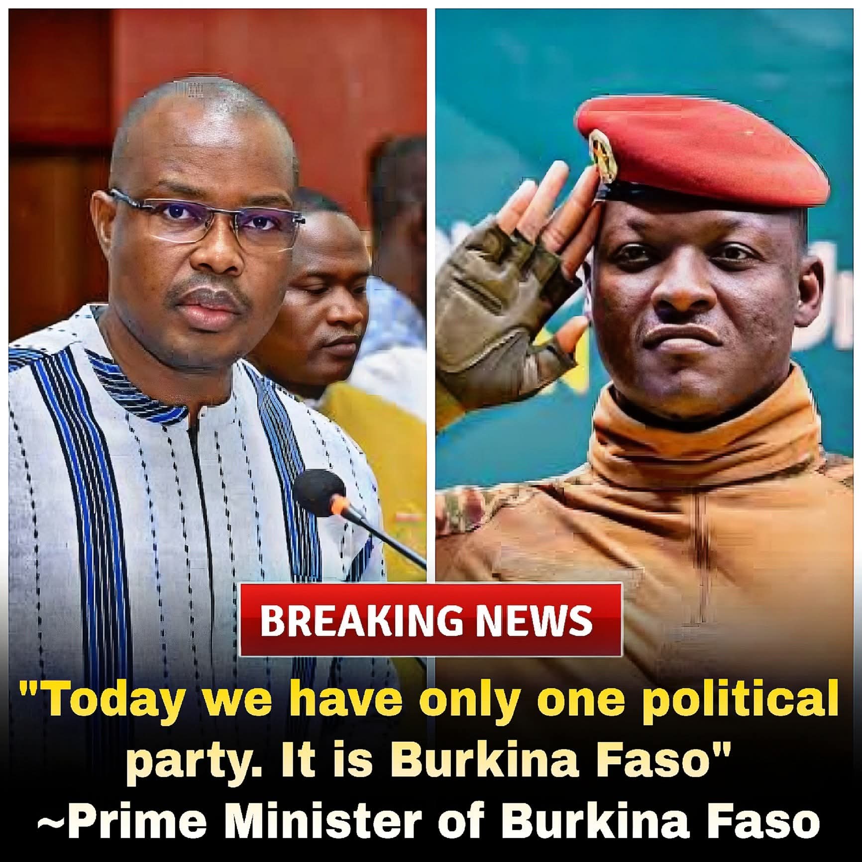 Burkina Faso Prime Minister has announced that Burkina Faso has effectively become a one-party state — with the nation itself as the only “party.”