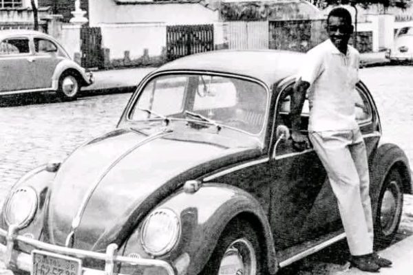 Legendary football Pelé with his car in 1960 in Santos, São Paulo, Brazil.